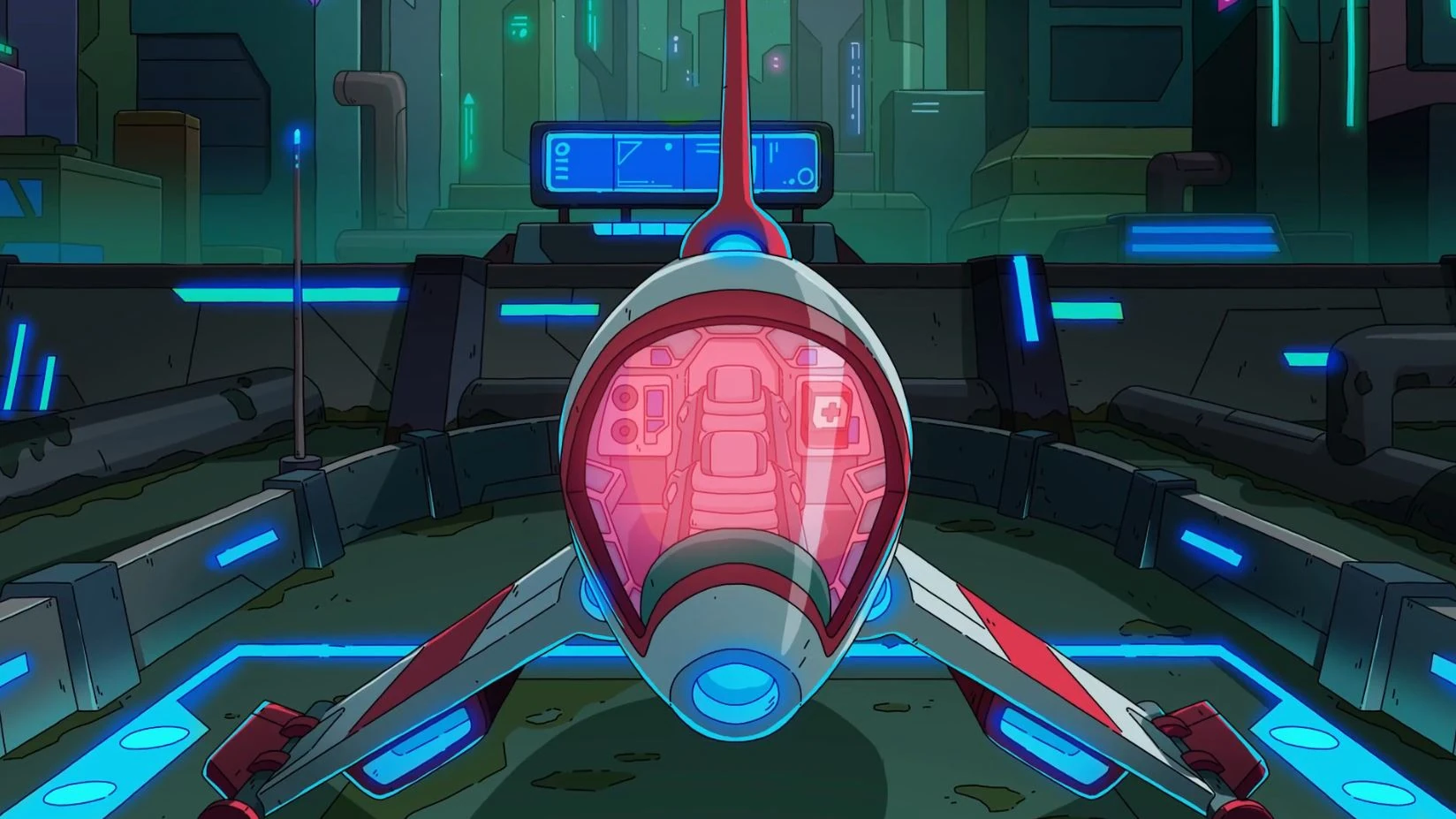 The craft can seat two people, with a small rear compartment. Is is armed and equiped with a Lightfold Engine.