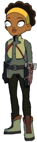 She removes her spacesuit’s logo but retains the suit in "Chapter 5" after severing her allegiance to the Infinity Guard. She wears a light orange hairband, gray belt, gloves, and boots and a white triangle collar like Gary's.