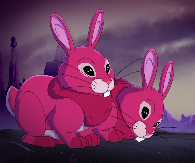 Space Bunnies are large, pink bunnies capable of flying through space. When in battle, they are capable of taking on a more threatening appearance, with red eyes and razor sharp teeth.