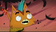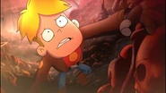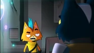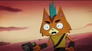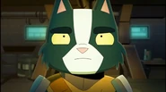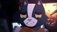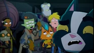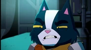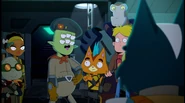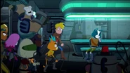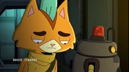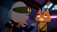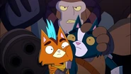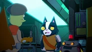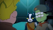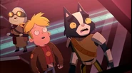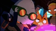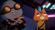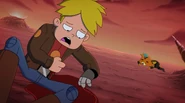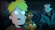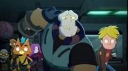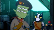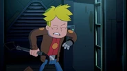 Clarence sees a chance to steal his ship back, but H.U.E. zaps him with a taser.